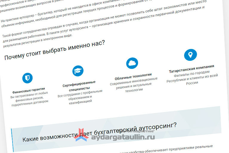 Как-то раз, на проекте корпоративного сайта по бухгалтерскому обслуживанию возникла необходимость сделать страницу услуги в обычном корпоративном сайте по типу лендинга, дополнив страницу соответствующими блоками. Обычная страница состоит из блоков: заголовок изображение анонс блок призыва к действию детальное описание отзывы…